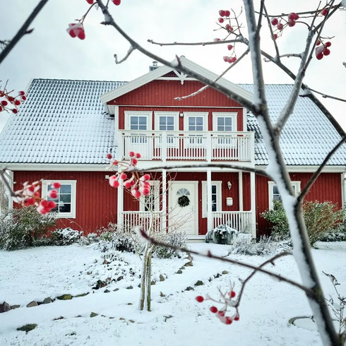 Und nun? 30 Jahre später wohne ich nun mit meiner Familie in unserem eigenen roten Holzhaus und haben das große Glück, unser Leben nach unseren Vorstellungen gestalten zu können. Zu unserem kleinen Hof gehören zwei Nebengebäude, der Garten und das Gewächshaus und natürlich jede Menge Blumen.